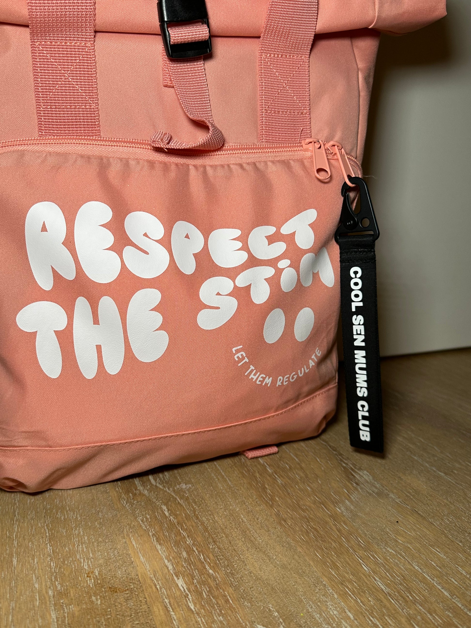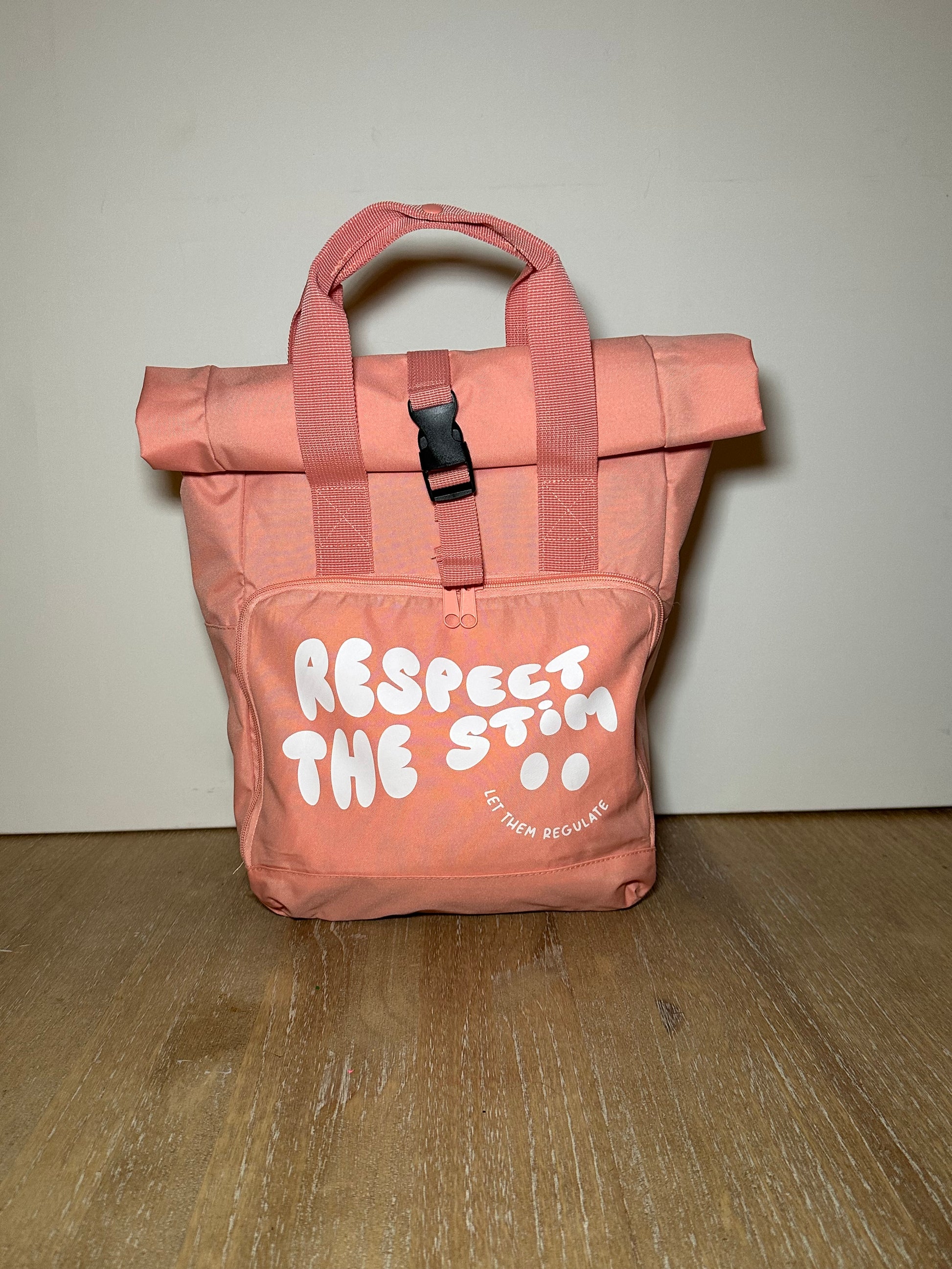 Roll-top closure. Front pocket organiser section. Front pocket designed for easy decoration. Webbing carry handles. Zippered internal pocket. Padded back panel. Padded adjustable shoulder straps